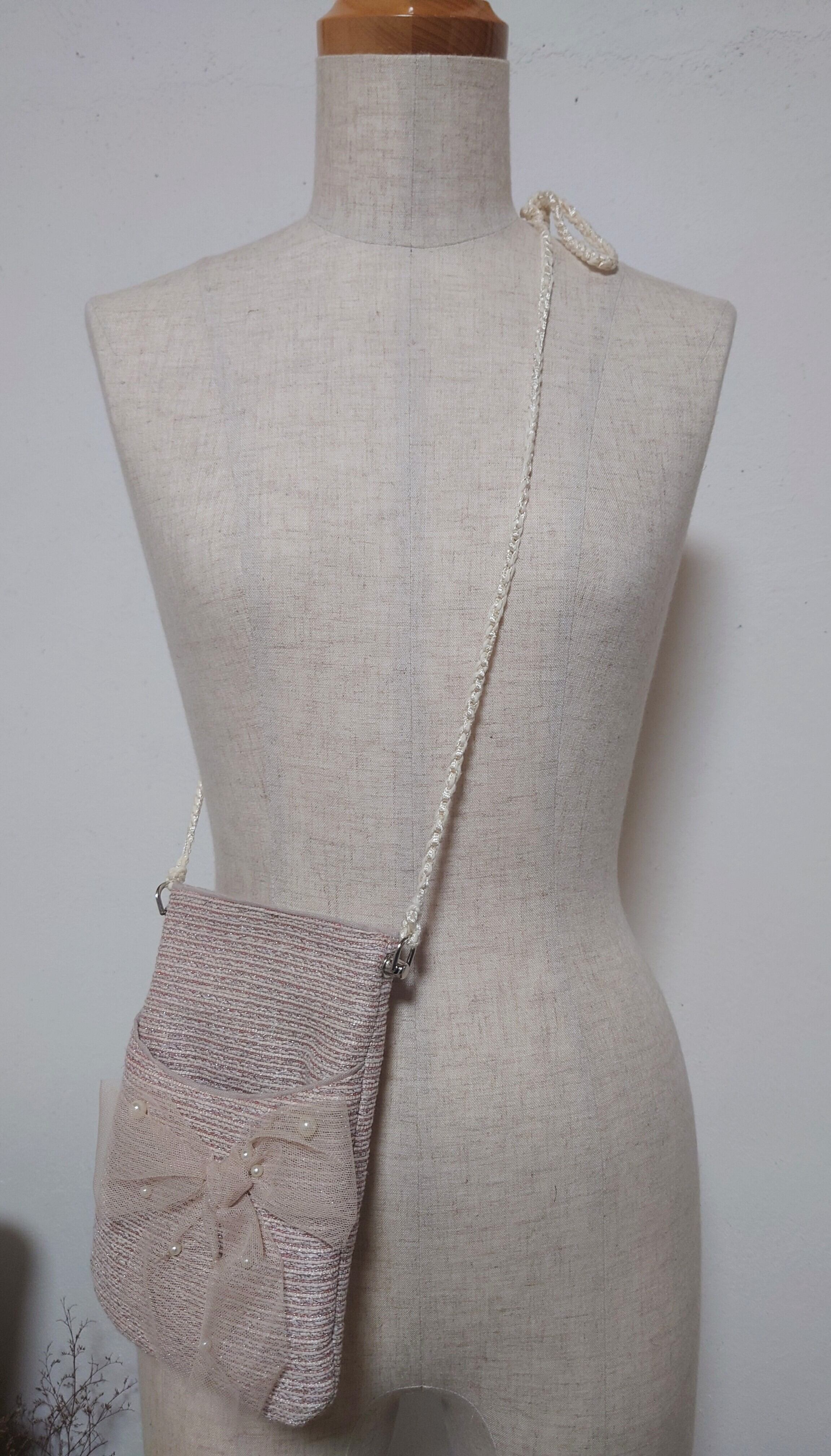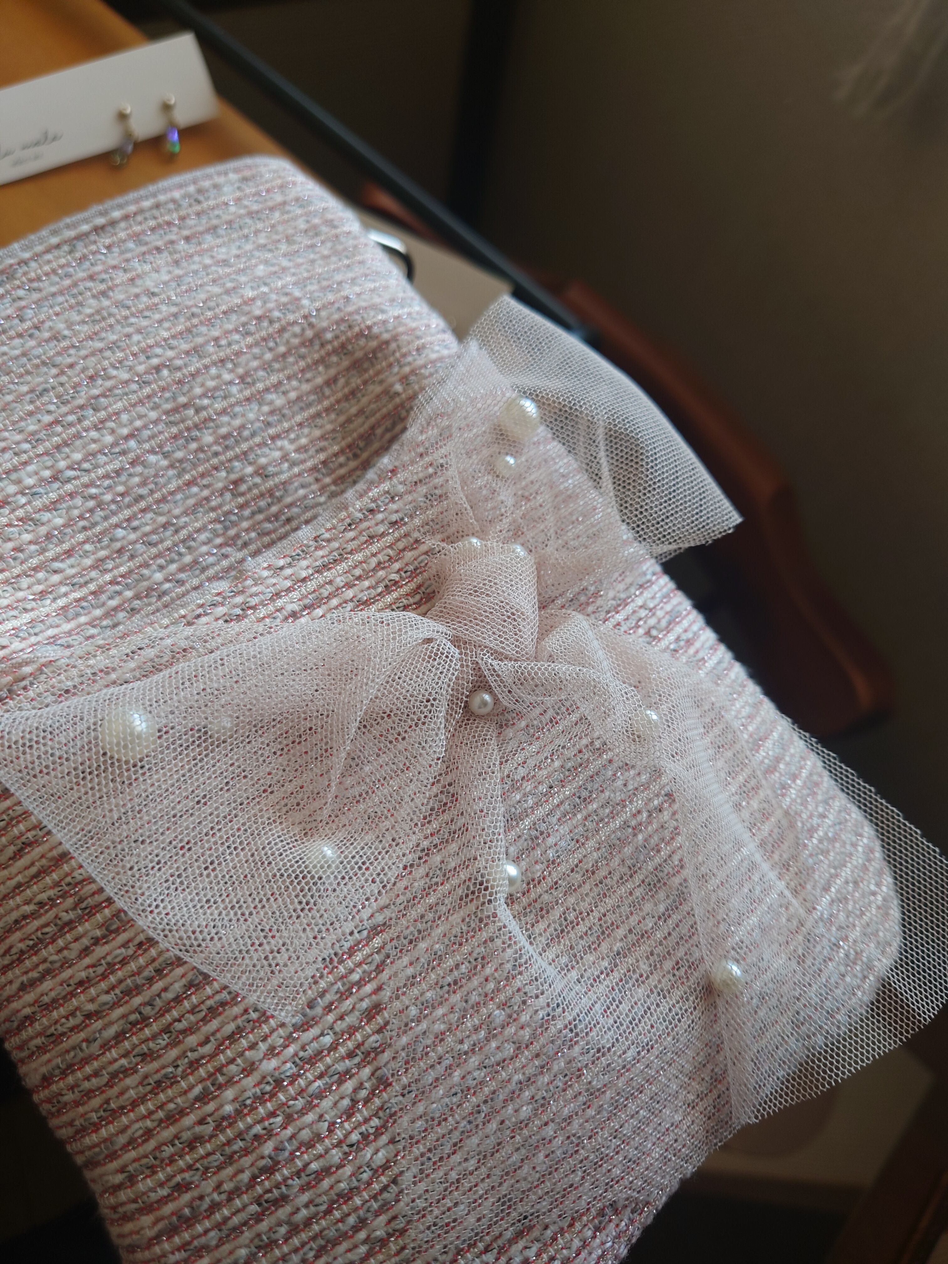 薄ベージュのチュールでリボンを作り、パールをちらしてます。