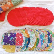パッチワークのような花柄プリント生地はカットする場所で絵柄が変わり全て一点もの。